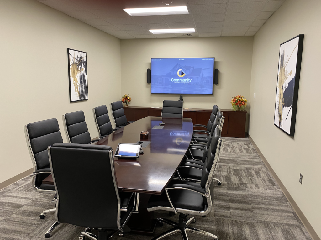 Community Association Management offers fully equipped conference space available for rent by the hour or day. Our professional meeting facilities provide the perfect setting for business conferences, board meetings, training sessions, and group gatherings.